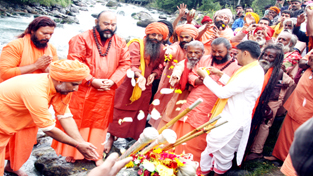 JAMMU, Aug 31: Annual pilgrimage of Chhari-Mubarak Swami Amarnath Ji culminated today at Pahalgam with the performance of its last rituals i.e ‘Pujan’ & ‘Visarjan’, at the bank of river Lidder. Large number of Sadhus, pilgrims and few tourists who had come from various parts of the country joined the Pujan. Later, ‘Karri-Pakouri’ Bhandara was organized and ‘Dakshina’ was offered.