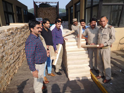 An official spokesman of the Department said that a vehicle bearing registration No.JK02AT-6277 reported at Toll Post Lakhanpur late last night and as per the documents produced it was reportedly loaded with fresh fruit apples consigned by M/s Gusia Fruit Growers, 154-B Fruit Market, Shopian, Kashmir to M/s M/s Durga Trading Co., 56C, Fruit Mandi Bijnor UP vide Challan No( G.R.No.) 1006 dated: 26-10-2016. The vehicle was put to physical check. On physical checking of the vehicle, 4575 Nos willow clefts were recovered from it.