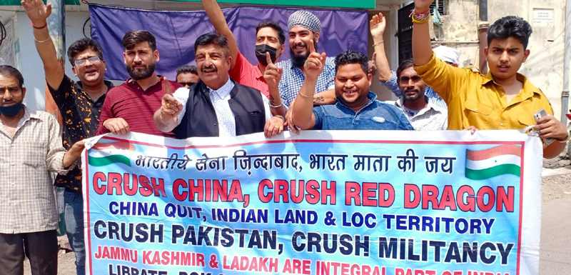 The protest was led by Sunil Dimple, president of Mission Statehood Jammu Kashmir. Speaking on the occasion, Dimple expressed strong resentment over construction of roads & bridges by China in illegally occupied Indian land in Ladakh.