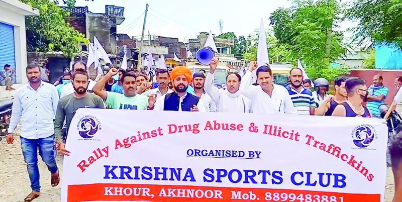JAMMU, July 29: An anti drug awareness rally was organised under the leadership of Narinder Singh Bhau, chairman of Krishna Sports Club Khour to make the youth aware of drug and its abuses at Khour, here today.