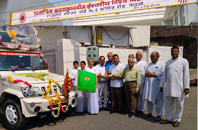 Dr. Bharat Bhushan, Chief Executive Officer, Integrated Watershed Management Programme, J&K flagged off the especially equipped Rath from Kathua along with Brahma Kumari Veena, Head, Brahma Kumaries Kathua Centres in the presence of Dr. J.S Jasrotia, Child Specialist; Tarlok Nath Gupta, Senior Advocate; Brahma Kumari Sisters Mannu, Priyanka, Jyoti, Sushma, Rimpi and Tarsem Gupta of Kathua Motors.