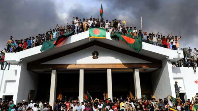 Home home slider left Anti-Government protestors display Bangladesh’s National flag as they storm Prime Minister Sheikh...