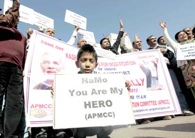 APMCC leaders Vinod Pandit its chairman, King C Bharti, national spokesperson and Arun Kandroo, general secretary said Mr Modi was the only hope for sagging morale of Indians. Kashmiri Pandits have pinned their high hopes on him to get them out of the miseries they have been facing for the last 23 years of their forced exile from their mother land, they added.