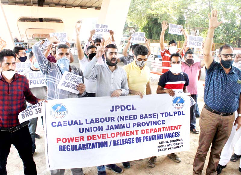 JAMMU, Oct 1: Extending support to ongoing strike of PDD daily wagers, Apni Party leaders today joined a demonstration at Dogra Chowk here and demanded regularization of the daily wagers and causal workers of the Department immediately.