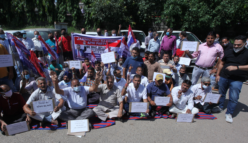 The protest led by State OBC Coordinator Madan Lal Chalotra was held at Press Club, Jammu in which people from district Jammu, Samba, Kathua, Reasi and Udhampur participated to demand implementation of Mandal Commission Report i.e 27 per cent reservation in favour of OBC in Jammu and Kashmir.