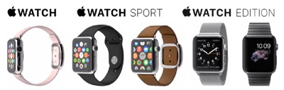 * Apple watch (style model,with plastic, steel, and leather band options)