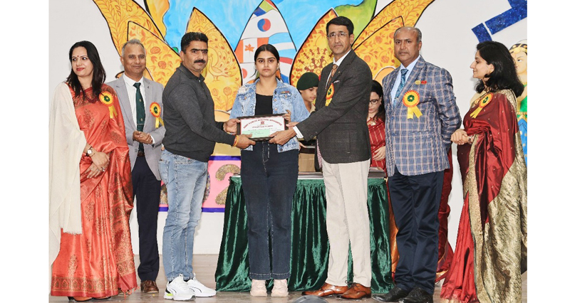 Prabhdeep Singh, a student of class IX who won the gold medal by defeating the three-time world champion German player in the under-23 age group in the fifth Tennikoit World Cup held in South Africa, was also specially honored and was given a certificate along with a cash prize.