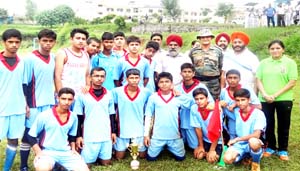 AKHNOOR, July 29: Scripting a win in penalty shootouts over hosts Army Public School (APS) Akhnoor, APS Udhampur lifted the title trophy of the 2-day Northern Command Inter-School Football Championship played at Army Public School ground, here.