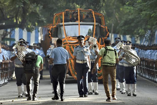 All senior officers of the three services were present at the Brar Square besides several political leaders including former Prime Minister Manmohan Singh and BJP veteran L K Advani.