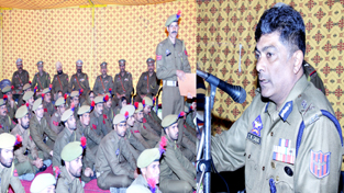 ADGP Armed S M Sahai addressing officers and jawans during a darbar on Wednesday.