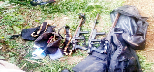 Arms and ammunition recovered at Narwal Bala in Trikuta Nagar, Jammu on Saturday.
