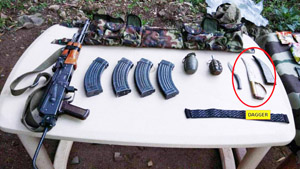 Recoveries made from the site of BAT action included one rifle, magazines, ammunition, explosive devices, dagger and war-like stores, which indicated nefarious designs of the BAT members, sources said.