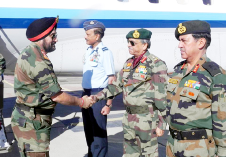 Army chief Gen Bikram Singh being received by Northern Army Commander Lt Gen Sanjiv Chachra and GOC 14 Corps Lt Gen Rakesh Sharma in Leh on Saturday. By Daily Excelsior - September 15, 2013 Share FacebookTwitterWhatsAppPinterestLinkedinCopy URLTelegramEmailTumblrReddItPrintKoo Army chief Gen Bikram Singh being received by Northern Army Commander Lt Gen Sanjiv Chachra and GOC 14 Corps Lt Gen Rakesh Sharma in Leh on Saturday. Follow our WhatsApp channel