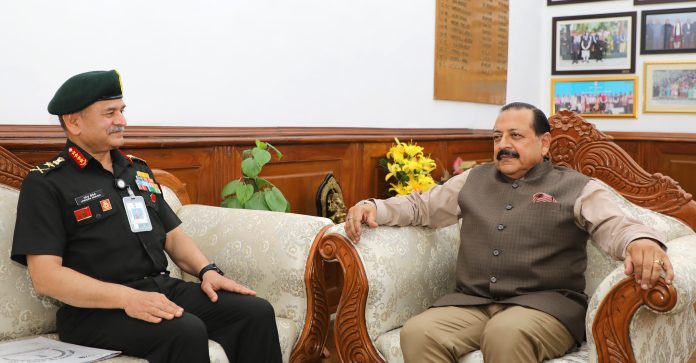 Dr. Jitendra Singh said, he felt added pleasure to note that Gen Dwivedi belonged to the J&K rifles regiment into which he was commissioned in 1984 and was also well versed with the conditions in J&K. The courtesy meeting, which was the maiden interaction with the Minister after General Dwivedi took charge as the 30th Chief of the Army Staff (COAS), also touched upon various aspects of security.
