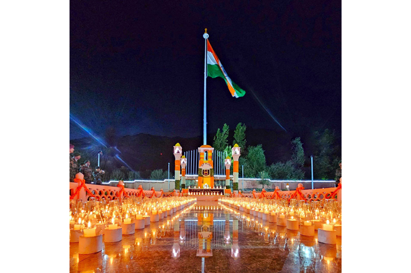 Shaurya Sandhya organised at Kargil War Memorial, Drass on Tuesday with 559 lamps, each symbolising a braveheart, lit at the Veer Bhoomi. (UNI)