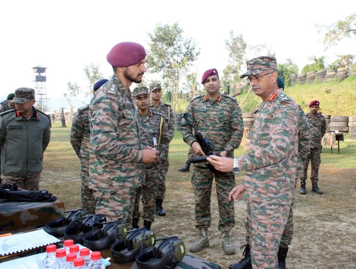 JAMMU, Nov 22: Northern Army Commander Lieutenant General M V Suchindra Kumar today reviewed the newly inducted ‘Asmi’ machine pistols.