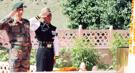 UDHAMPUR (J&K): On the occasion of 17th Kargil Vijay Diwas, Lt Gen DS Hooda, Army Commander, Northern Command paid homage to the martyrs of OP VIJAY at the historic War Memorial at Drass today. He was accompanied by GOC Fire and Fury Corps. The Army Commander also interacted with the Veer Naaris, awardees and relatives of martyrs during the event. Speaking on the occasion, the Army Commander paid glowing tributes to the sacrifices and expressed his gratitude to the martyrs, their NOK and Veer Naris. The Army Commander later interacted with the media.