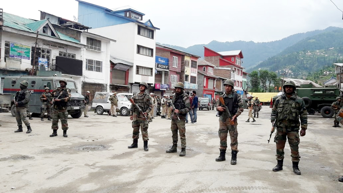Army deployed in Bhaderwah town on Friday. -Excelsior/Tilak Raj By Daily Excelsior - May 17, 2019 Share FacebookTwitterWhatsAppPinterestLinkedinCopy URLTelegramEmailTumblrReddItPrintKoo Army deployed in Bhaderwah town on Friday. -Excelsior/Tilak Raj Army deployed in Bhaderwah town on Friday. -Excelsior/Tilak Raj Follow our WhatsApp channel