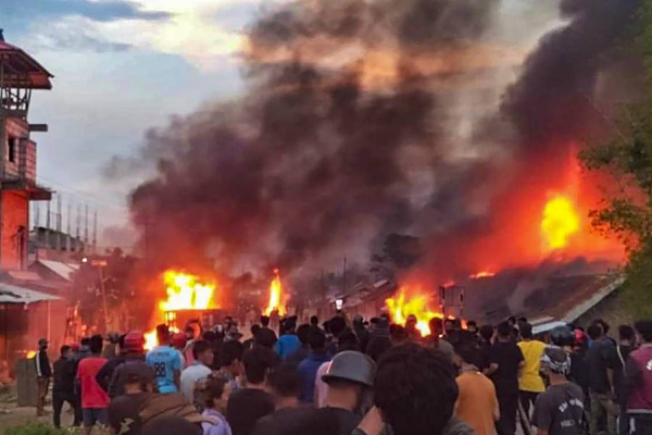 Many shops and houses were vandalised, and gutted in arson that lasted for more than three hours in Torbung, they said.