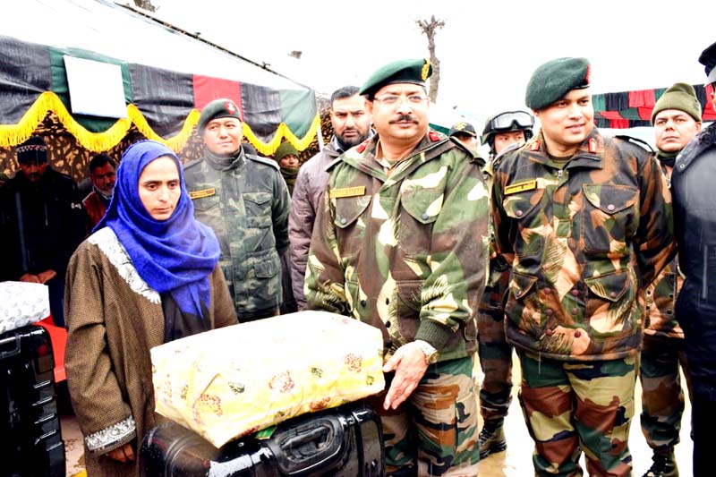 BARAMULLA, Feb 12: In an attempt to reach out to the local populace and to help them fight the severe winters, 15 Rashtriya Rifles/7 Sector RR/Kilo Force, organized a programme to distribute huge quantity of essential items like blankets, suitcases, leather bags, sports and canvas shoes, sweat shirts etc at Vilgam Army Camp.