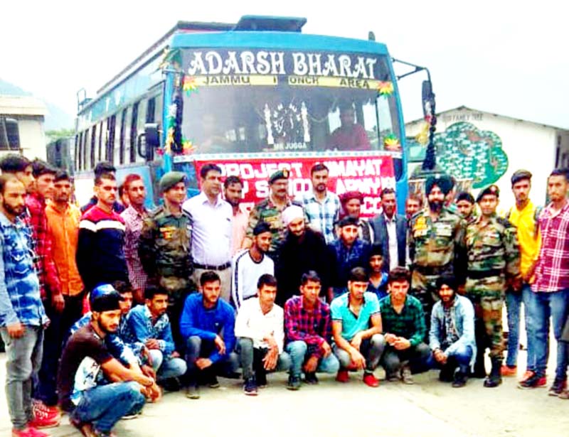 UDHAMPUR, May 16: In its endeavor to empower local youth, the Indian Army flagged off 25 youth from Samote, Kotranka, Phalni, Chasana and Budhal to attend a six months skill development course at Delhi and Lucknow.