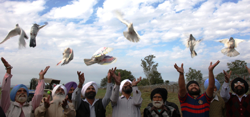 People release pigeons as Army returns their land after de-mining it on the LoC in Akhnoor sector on Friday.