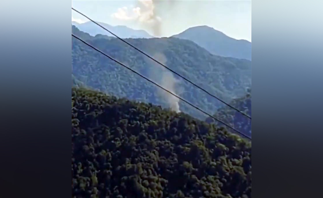 Smoke billows after an advanced light helicopter of the Indian Army crashed at Migging in Upper Siang district of Arunachal Pradesh, on Friday