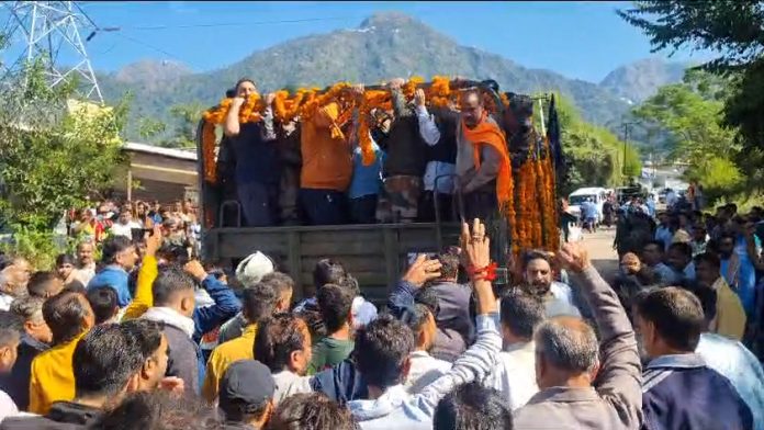 As the body of the jawan was brought home for the last rites, hundreds of the people converged in the village, and raised slogans in his name. The last rites were conducted with full military honours.