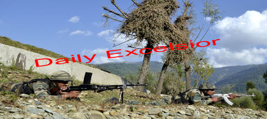 Army jawans in action at the site of encounter in Warnav village of Lolab area in Kupwara district on Tuesday . PHOTO BY Aabid Nabi
