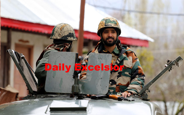 Army jawans in action during encounter between security forces and militants at Hardushoora Sultanpora village Tangmarg in north kashmir Baramulla district….Excelsior\Aabid Nabi