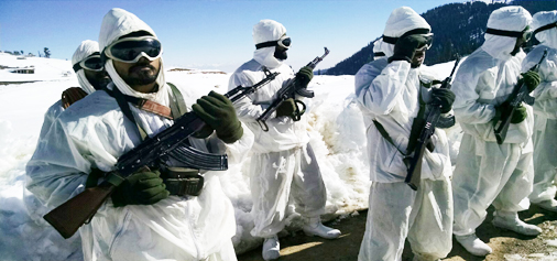 Army men patrolling the LoC in Gulmarg sector ahead of Republic Day celebrations.