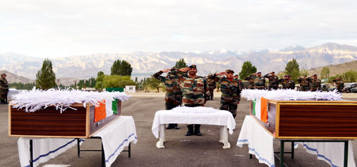 Army officers and jawans pay tributes to two martyr soldiers at Leh on Sunday. By Daily Excelsior - August 1, 2016 Share FacebookTwitterWhatsAppPinterestLinkedinCopy URLTelegramEmailTumblrReddItPrintKoo Army officers and jawans pay tributes to two martyr soldiers at Leh on Sunday. Army officers and jawans pay tributes to two martyr soldiers at Leh on Sunday. Follow our WhatsApp channel