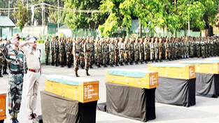 Army officers paying tributes to eight martyred soldiers at Chinar Corps Headquarters Srinagar on Wednesday. By Daily Excelsior - June 27, 2013 Share FacebookTwitterWhatsAppPinterestLinkedinCopy URLTelegramEmailTumblrReddItPrintKoo Army officers paying tributes to eight martyred soldiers at Chinar Corps Headquarters Srinagar on Wednesday. Follow our WhatsApp channel