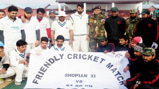 SHOPIAN, Jan 1: To strengthen the bonding between people and Army and celebrate New Year, a friendly cricket match was organised by Army at Shaheed Imtiyaz Thokar Stadium, here today.