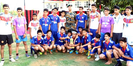 AWANTIPORA, July 20: In its efforts to connect and strengthen bond with the local youth, search & groom talent and to channelize energy of youth in right direction, 42 Battalion of Rashtriya Rifles organized a week long Football Training Capsule for 48 youths of Awantipora and Tral region in Hajahad Public School & Rajpora Camp Football Ground, here.