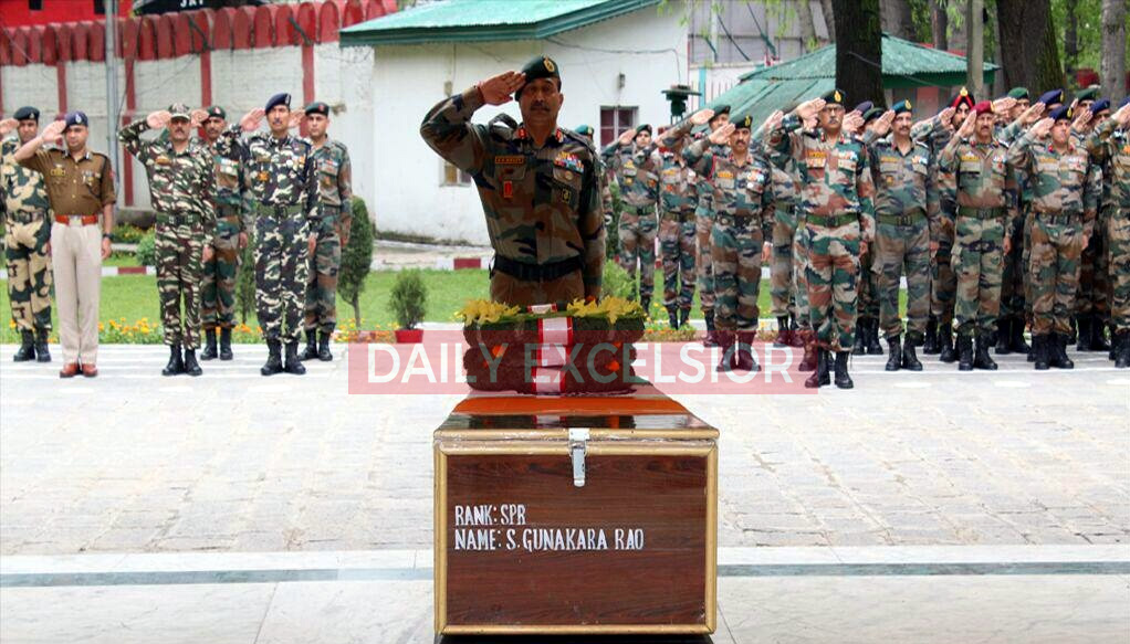Defence Ministry spokesperson Colonel Rajesh Kalia here on Wednesday evening said that the Army paid a befitting tribute with full military honours to the martyred soldier, Sepoy Sada Gunakara Rao, who attained martyrdom during counter insurgency operations on Wednesday at Khudwani in Kulgam.