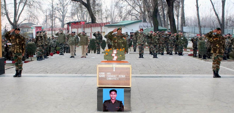 SRINAGAR, Dec 17: Army today paid a befitting tribute to Havildar Chougule Jotiba Ganpati, who made the supreme sacrifice on the Line of Control on December 16, 2019 in Gurez Sector of Kashmir.