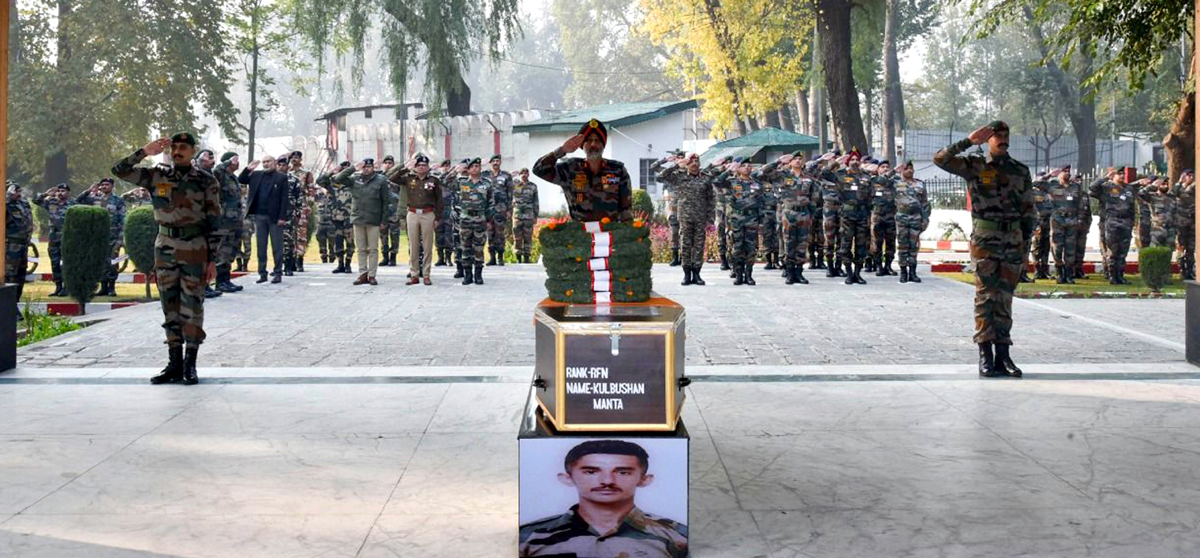 Army personnel paying tribute to Rifleman Kulbushan Manta on Friday. -Excelsior Photo By Daily Excelsior - October 29, 2022 Share FacebookTwitterWhatsAppPinterestLinkedinCopy URLTelegramEmailTumblrReddItPrintKoo Army personnel paying tribute to Rifleman Kulbushan Manta on Friday. -Excelsior Photo Army personnel paying tribute to Rifleman Kulbushan Manta on Friday. -Excelsior Photo Follow our WhatsApp channel