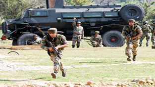 Army soldiers rush to take positions at Mahesar, Samba.                           -Excelsior/ Rakesh