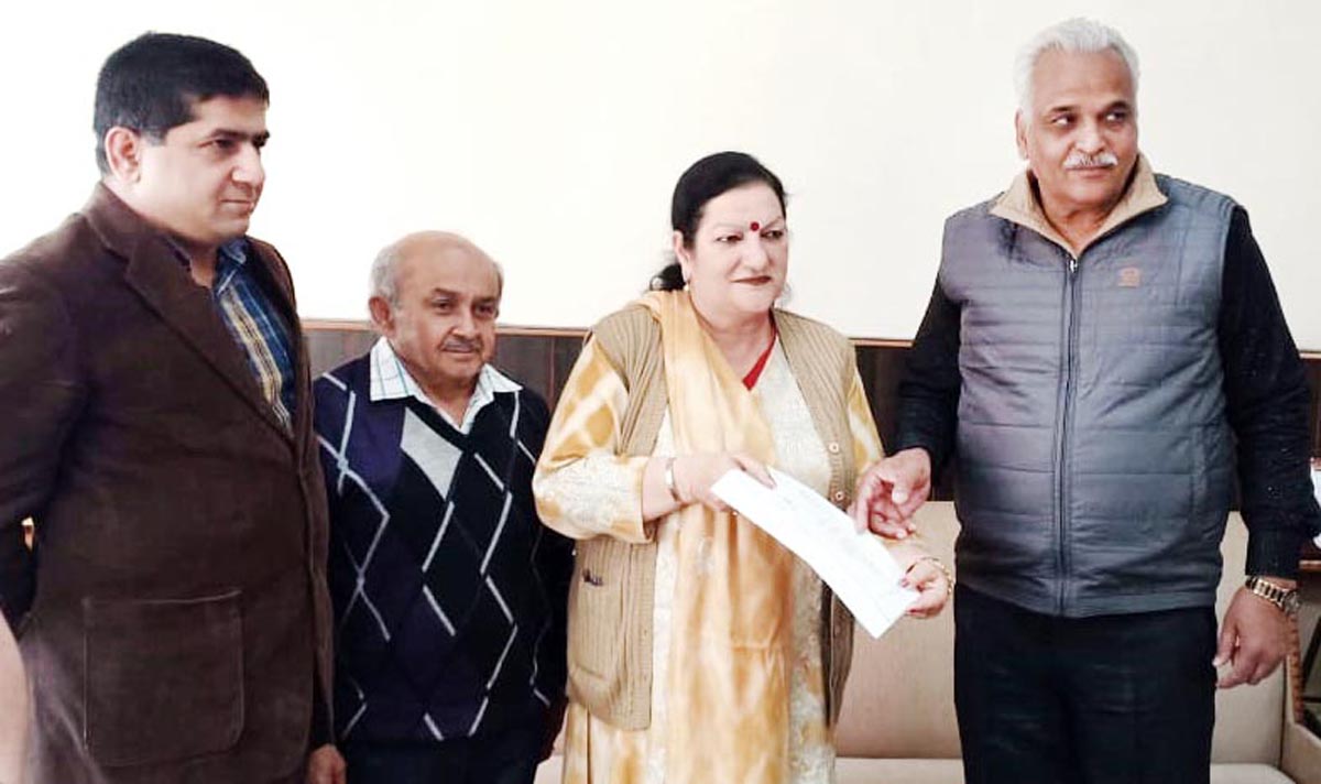 MLC Ramesh Arora presenting funds’ sanction letter to Dr Sunanda Raina, Principal, GMC Jammu, for purchasing ventilators.