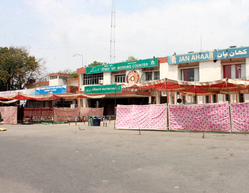 Arrangements made for arrival of passengers in first train during lockdown at Jammu Railway Station on Wednesday. The train will arrive on Thursday morning. —Excelsior/Rakesh