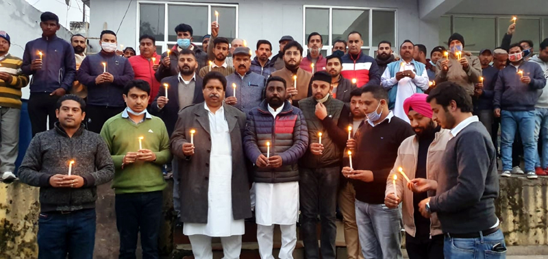 A candle-light vigil was held by the party members to pay tributes to the farmers who lost their lives while protesting against the farm laws enacted by the BJP Government.