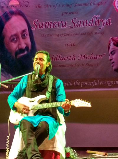 JAMMU, Jan 10: The Art of Living Jammu Chapter with the motto ‘let’s get charged this year for world peace with the powerful energy ‘celebrated new year with Sumeru Sandhya -an evening of divine & Sufi music with Siddharth Mohan international fame singer, guitarist and music composer who has many achievements to his name at this age including young achievers award and many more on international platforms, a engineer by profession who started learning music at the age of 12 years and associated with Art of Living for last 20 years