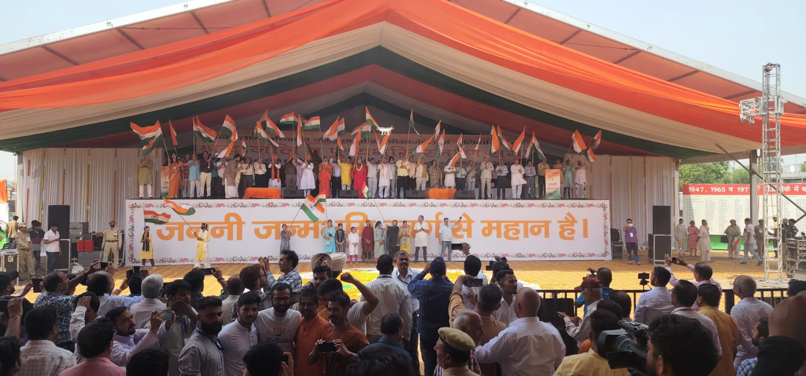 Senior BJP leaders led ‘Tiranga yatra’ from different parts of the city to join the rally which was attended by Pakistan-occupied Jammu and Kashmir (PoJK) displaced persons from within and outside Jammu and Kashmir besides Peethadheeshwar Sri Sri 1008 Sri Swami Vishwatmanand Saraswati Maharaj, Mahamandaleshwar Swami Dharmadev, film actor and producer Mukesh Rishi.