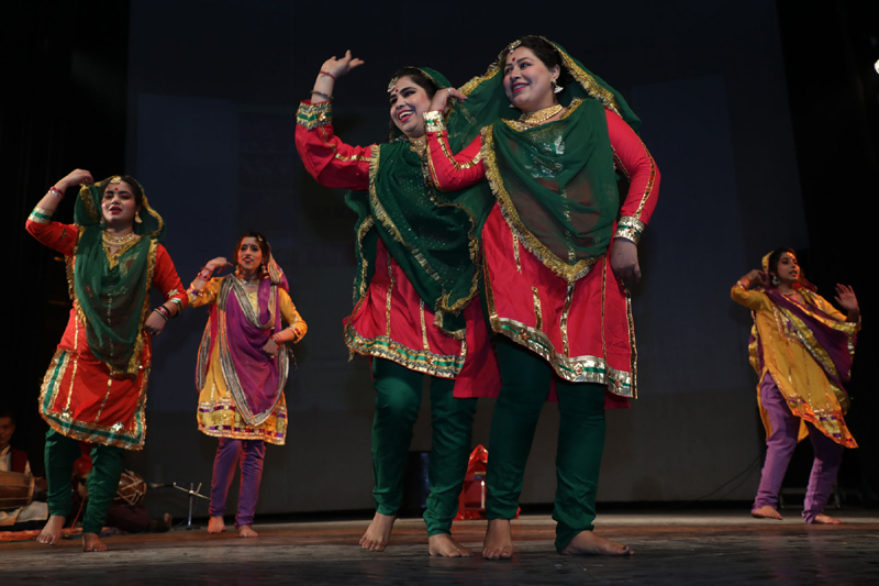 Artists performing a dance item during the inaugural function of National Folk Dance Festival at Abhinav Theatre in Jammu on Saturday. —Excelsior/Rakesh
