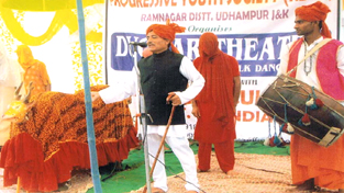 Artists presenting cultural programme ‘Duggar Theatre’ at Jammu on Tuesday.