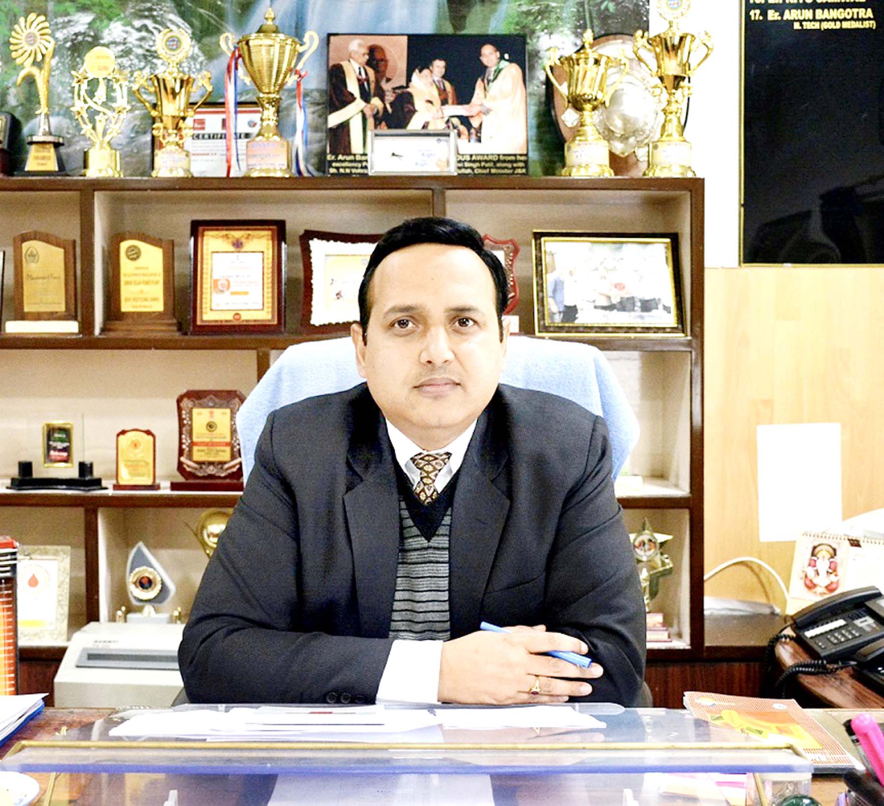 Er Arun Bangotra has done his schooling from Sainik School Nagotra, B.E from Govt. College of Engineering and Technology (GCET) Jammu and M.Tech from SMVDU, Katra. He received the Topper in M.Tech Meritorious Award from President of India during convocation in SMVDU. He has also been recently awarded with International Education Award 2020 as Outstanding Principal. He is author of many Engineering books, published Research papers in International/National Journals and is also contributing write-ups to many English Dailies including Kashmir Times, State Times, Daily Excelsior etc.