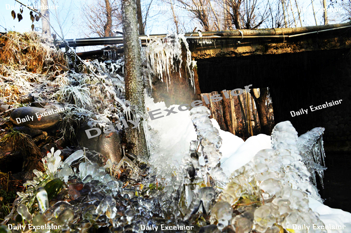 As mercury takes further dip in Kashmir icicles have started forming during cold nights in Shopian of South Kashmir-Photo : Younis Khaliq