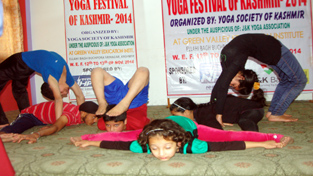 Asans being performed during Yoga Programme in Srinagar.