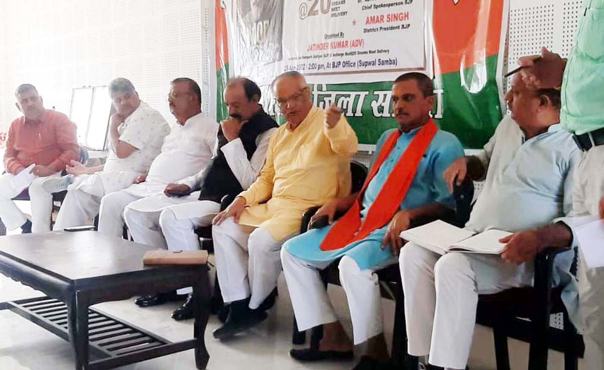 J&K BJP Vice-President Surjeet Singh Slathia, General Secretary Dr Devinder Kumar Manyal, former Minister Chander Parkash Ganga, Prabhari Narayan Singh, District President Samba Amar Singh, DDC Chairman Keshav, Municipal Chairman Pawan, Ganesh, Bachan, BDC chairman Jogehawar Singh, BLA1 Kashmir Singh, BLA1 Vijaypur Jai Ram Sharma, BLA 1 Ramgarh Darhan Chowdhary, all Mandal Presidents, l District Office bearers and others were present in the meeting.